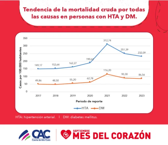- Por segundo periodo consecutivo, la mortalidad por todas las causas en la población con hipertensión arterial (HTA) y diabetes mellitus (DM) disminuyó en el país.