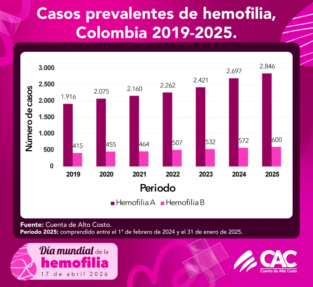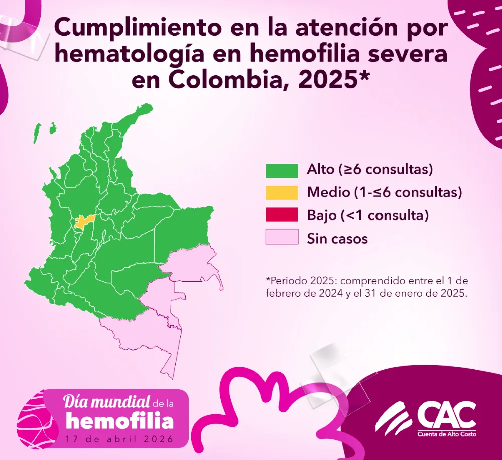Para 2026, la Federación Mundial de Hemofilia (FMH) establece como tema central “El diagnóstico: primera etapa de la atención”, destacando que la identificación temprana de la enfermedad es un paso fundamental para garantizar el acceso al tratamiento, mejorar la calidad de vida y reducir las complicaciones. En el marco del día mundial de la hemofilia, la Cuenta de Alto Costo (CAC) se une a esta conmemoración para visibilizar la situación de las personas con trastornos de la coagulación y resaltar la importancia del diagnóstico oportuno como punto de partida para la atención integral.