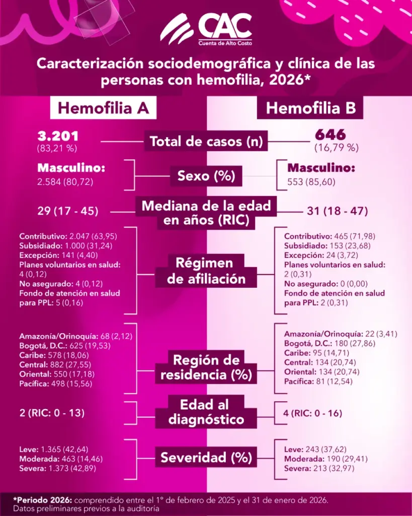 • En Colombia se reportaron 3.847 personas con hemofilia al 31 de enero de 2026¹