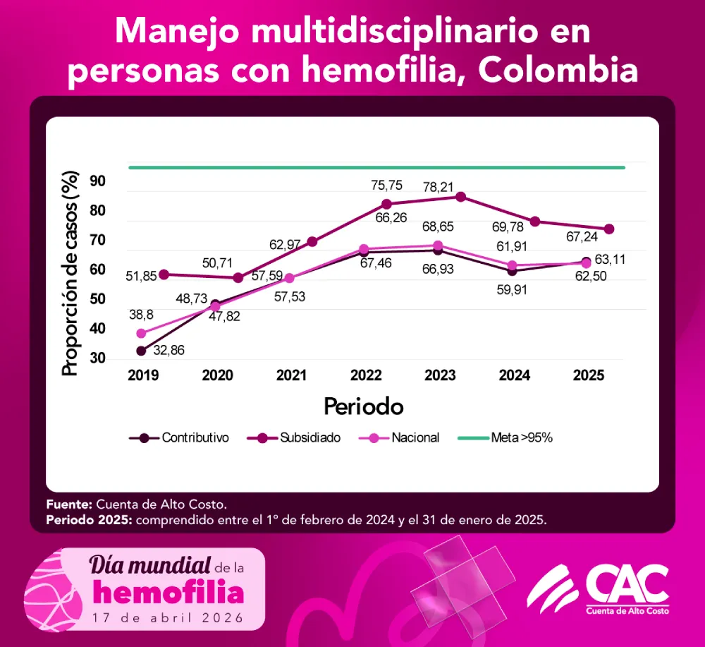 La Cuenta de Alto Costo reitera su compromiso con la generación de información que permita comprender el comportamiento de la enfermedad, orientar decisiones en salud y fortalecer la gestión del riesgo. El diagnóstico oportuno continúa siendo un elemento clave para avanzar hacia una atención integral, mejorar los resultados en salud y contribuir a la visión global de tratamiento para todas las personas con trastornos de la coagulación.