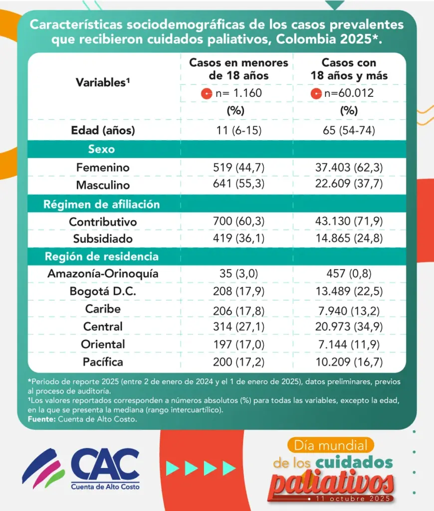 - En Colombia, entre el 2020 y 2025*, cerca del 10% de los casos prevalentes de cáncer incluyeron cuidados paliativos en su plan de manejo.