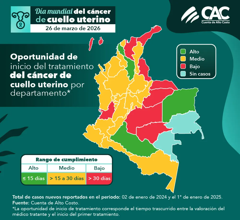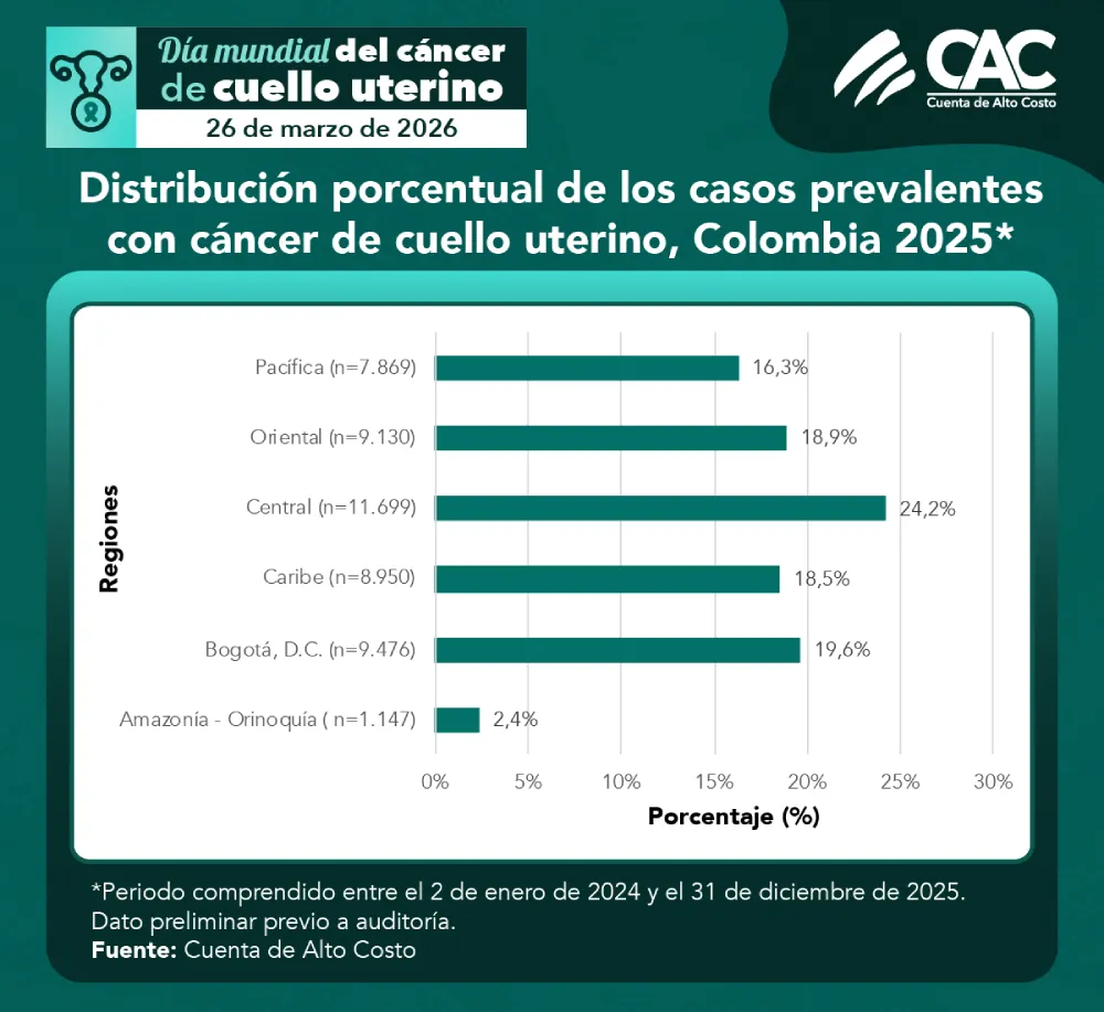 • En Colombia, 48.271 mujeres viven con cáncer de cuello uterino al 31 de diciembre de 2025.*